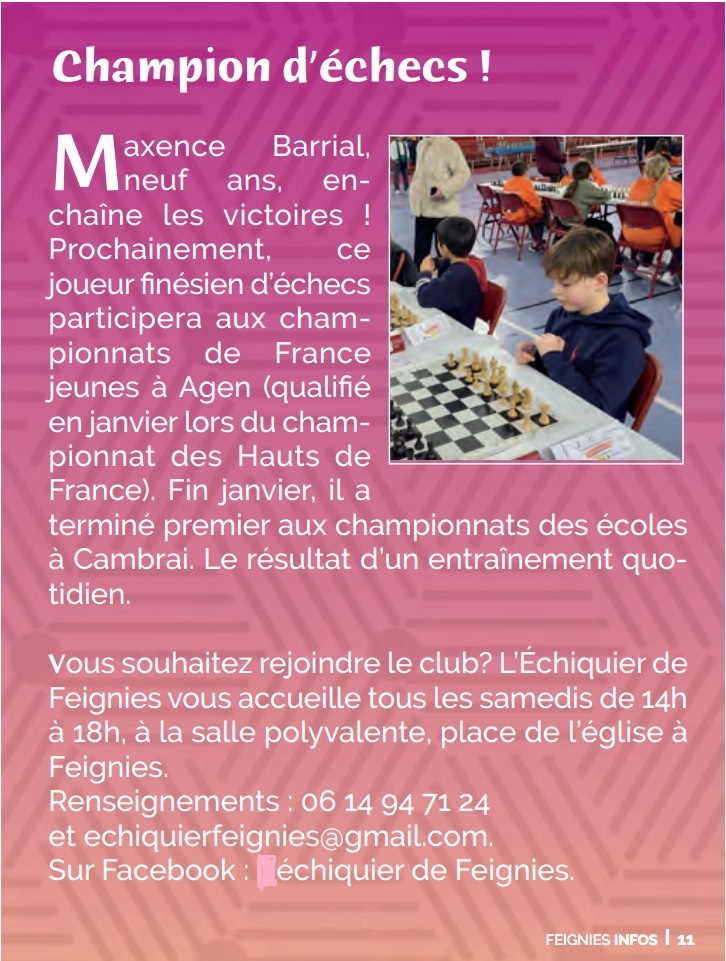 Article du Feignies Info de mai 2024